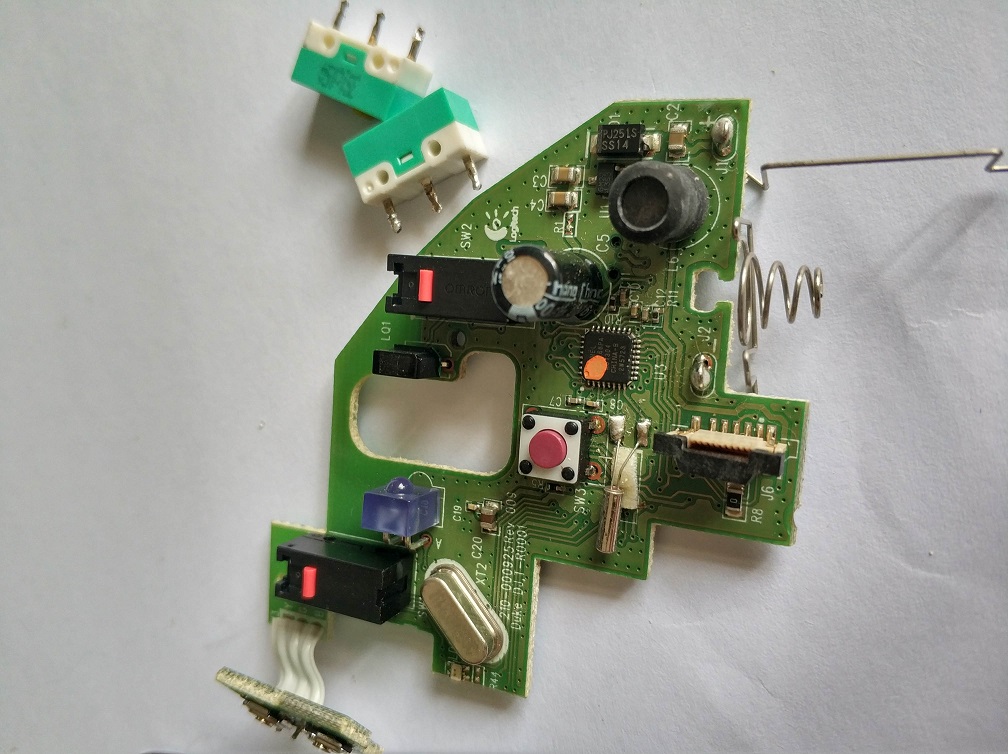 一共拿到三个鼠标,都是罗技的,m570 g1 518。其中最难的是518那款,双层电路板,通过pin针焊接,而且还是