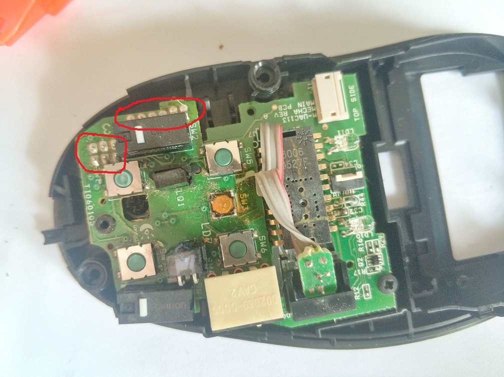两个pin针,由于没有吸锡器,只能靠技术来拆。所幸,最后还是顺利完成任务。三个鼠标都是左右键双击,直接更换微动开关。