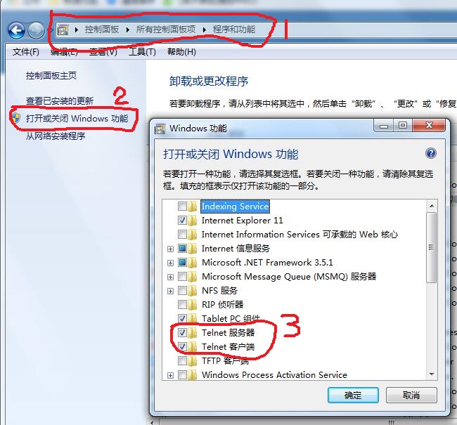 工具连接),如果提示“'telnet' 不是内部或外部命令,也不是可运行的程序或批处理文件。”,在windows打开telnet客户端: