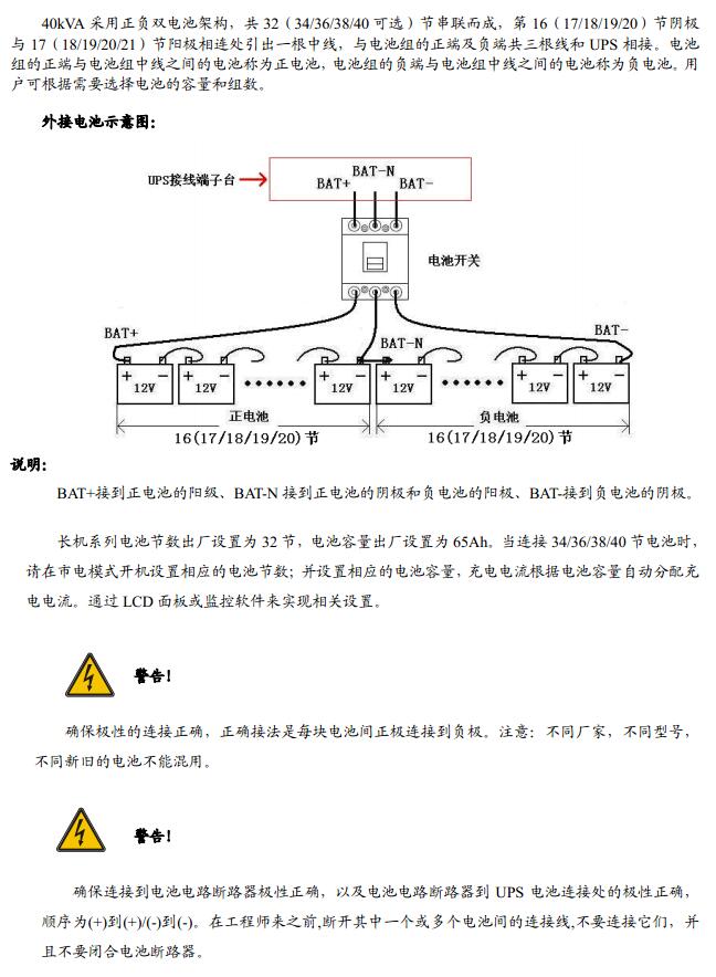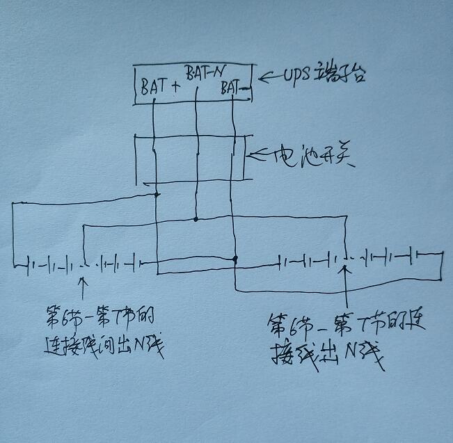 根据上面的文字及图示,电池是串联使用的,实际上安装完之后UPS无法开机并报警。然后直接联系厂家,厂家告诉