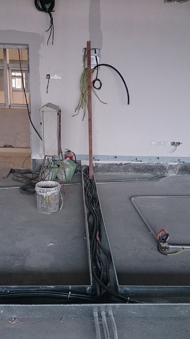 趁地面还没开始做防水处理,赶紧把自己的那部分先做完----放电缆