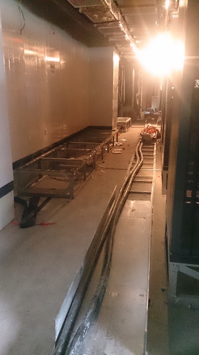 那边在布电缆,这边就已经在准备安装恒温恒湿精密空调了。