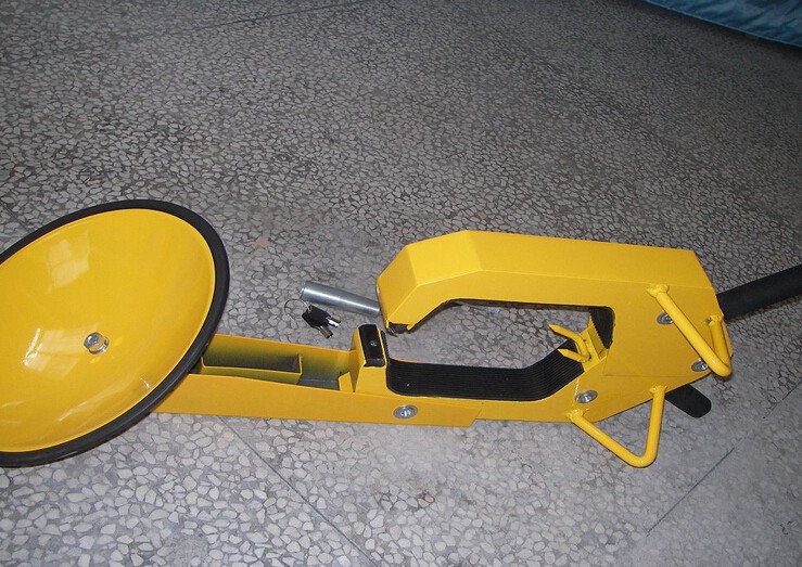 AS-BW-C1霸位牌防盗车轮锁技术参数:名称大吸盘防盗车轮锁型号AS-BW-C1尺寸1000x295x330mm钢板厚度1.5mm颜色黄色(可定制)净重9KGAS-BW-C1霸位牌防盗车轮锁性能特点:1.配有钢针,实现挫胎功能,在非正常开锁的情况下会把轮胎刺穿,让论坛无法正常工作;2.电脑烤漆,经久耐用不容易脱漆而影响美观;3.活动锁臂,锁具距离可调,适合各种大小规格不一的论坛;4.独有的大吸盘